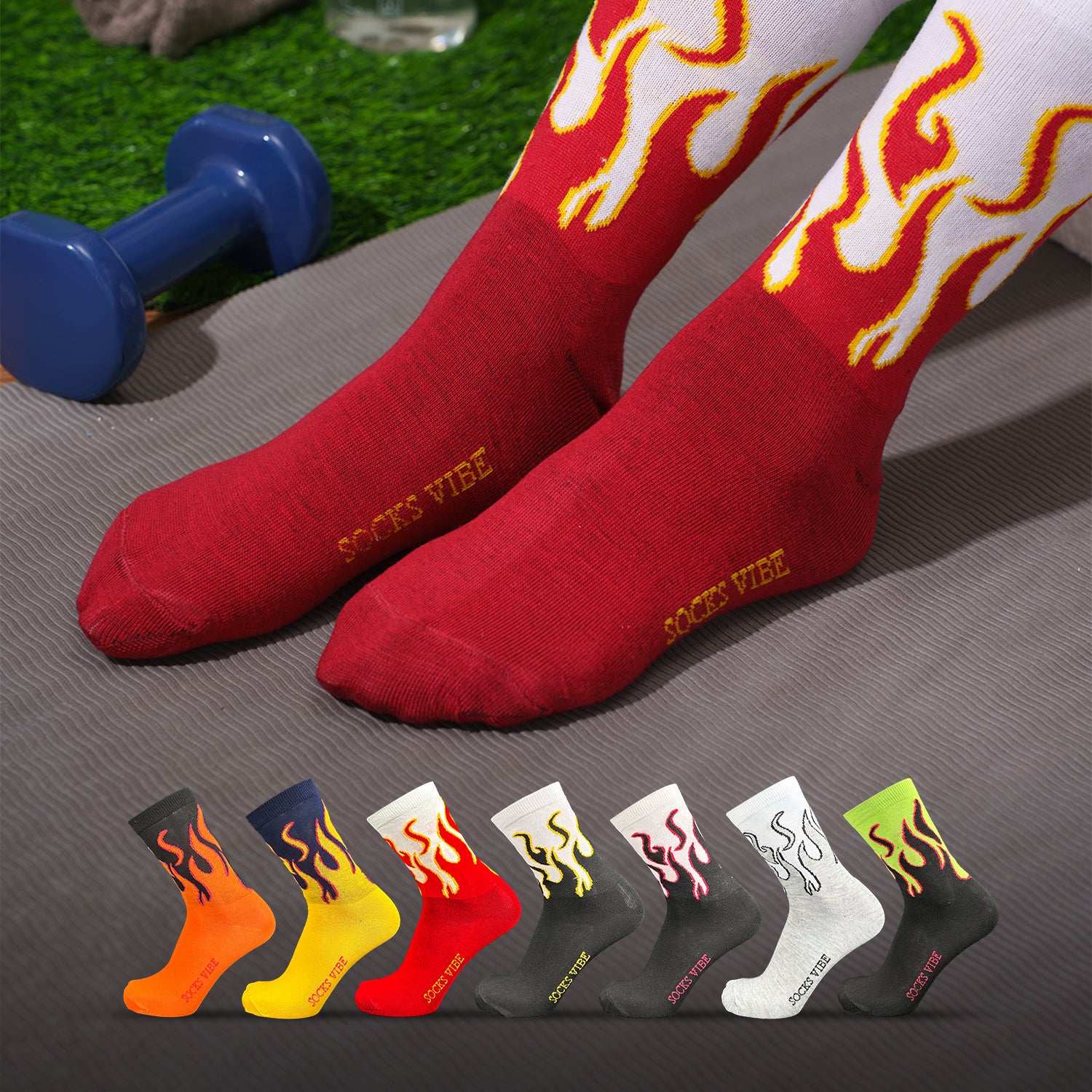 Each pair features bold flame patterns in vibrant colors, adding a powerful edge to your everyday look. Designed with soft, breathable fabric and a comfortable fit, these socks are perfect for casual wear, street style, or gifting.